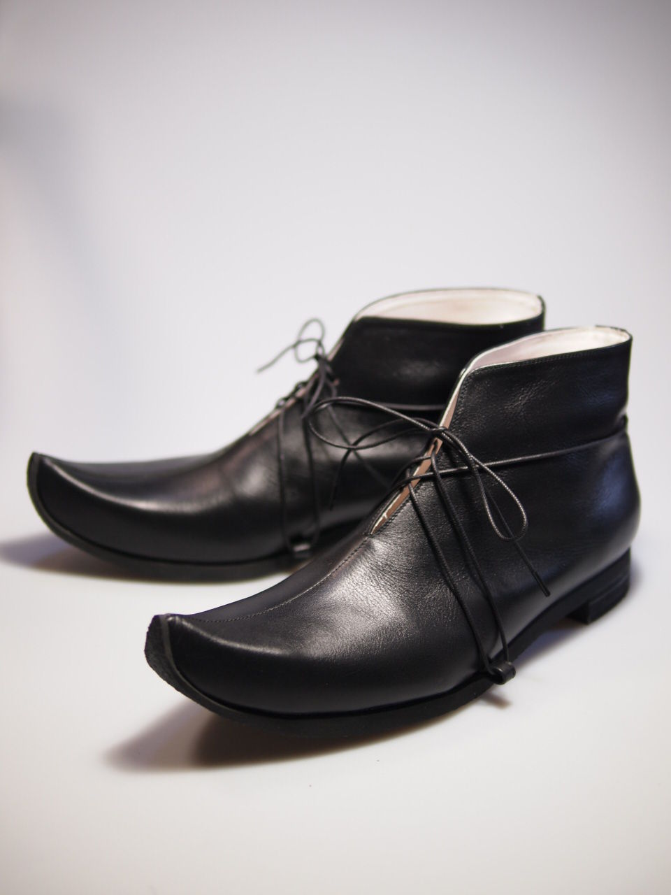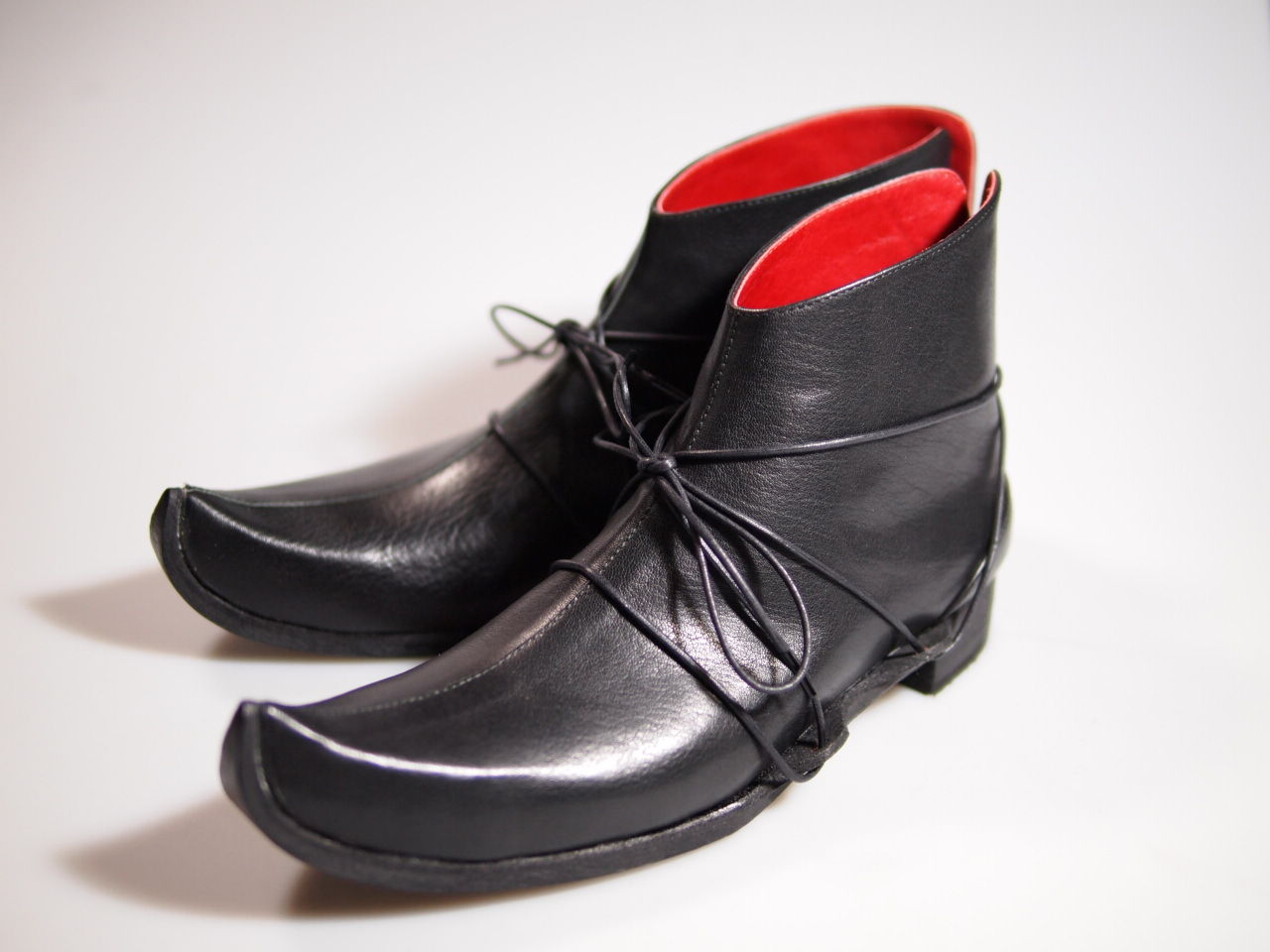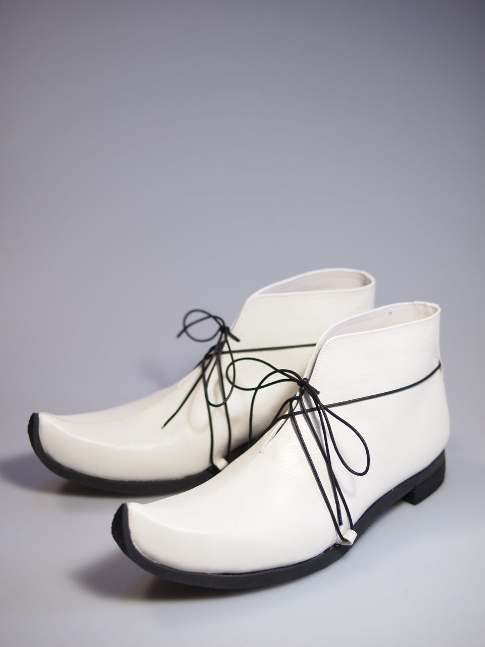 えいえいおうは戦の前に使う掛け声でもあったようですが、勝ち鬨でも発するというイメージもあり、いずれも指揮官またはそれに準ずる立場の人間が最初に発するのではと思い、武士で指揮官クラス、新し物、珍しい物好きな人物が似合いそうな、かつ女性が履いても格好良いシルエットを追求しました。