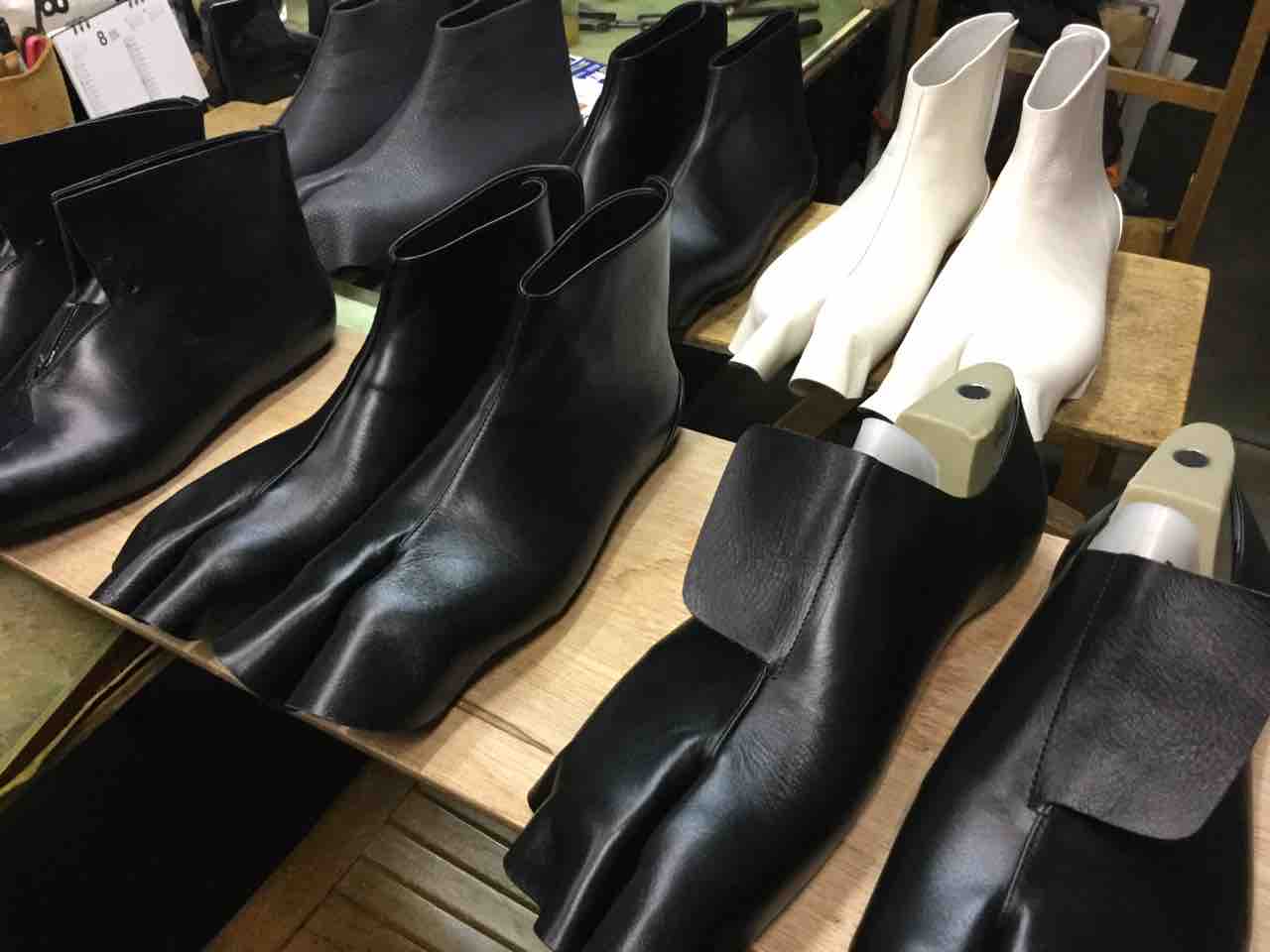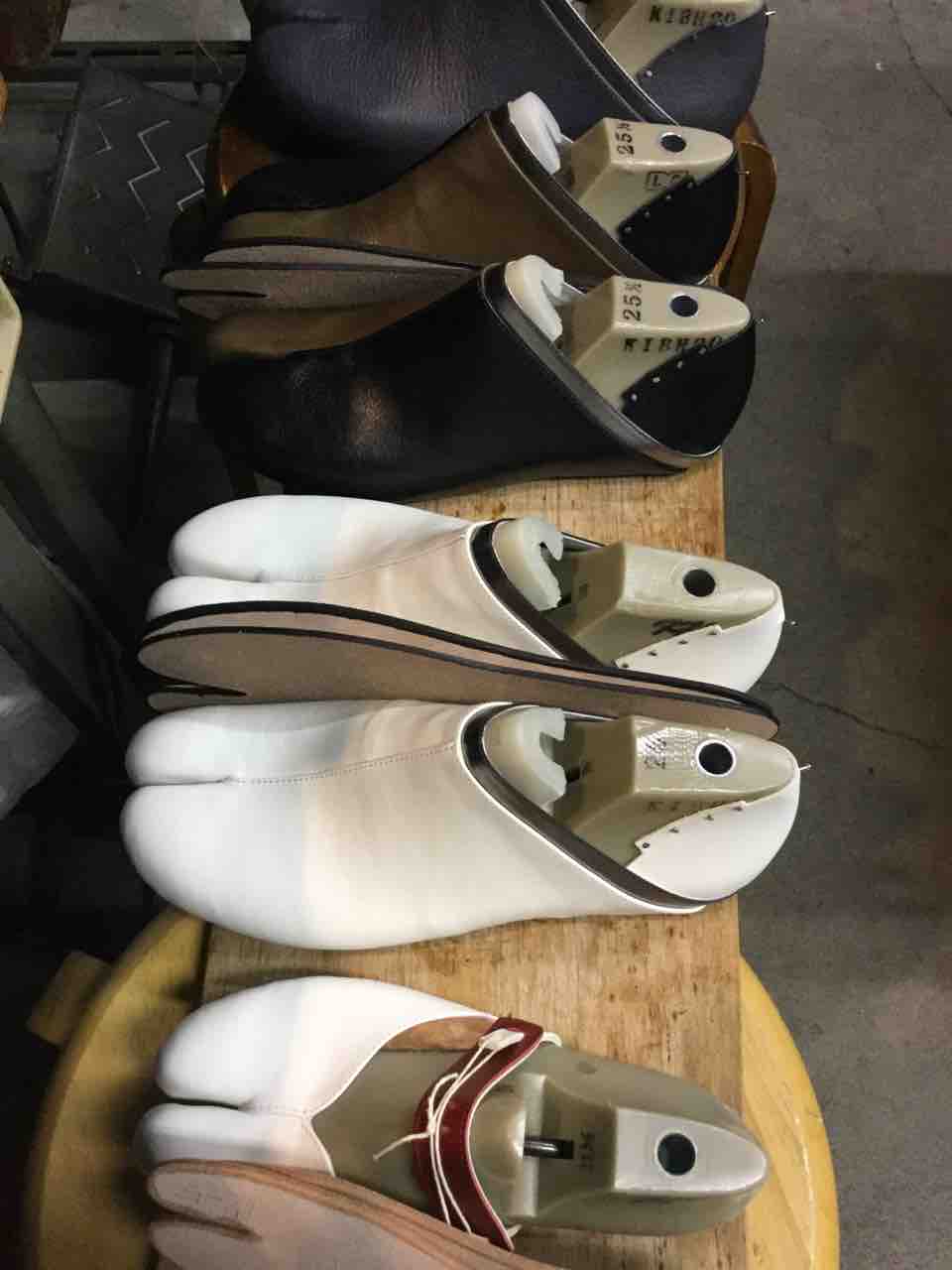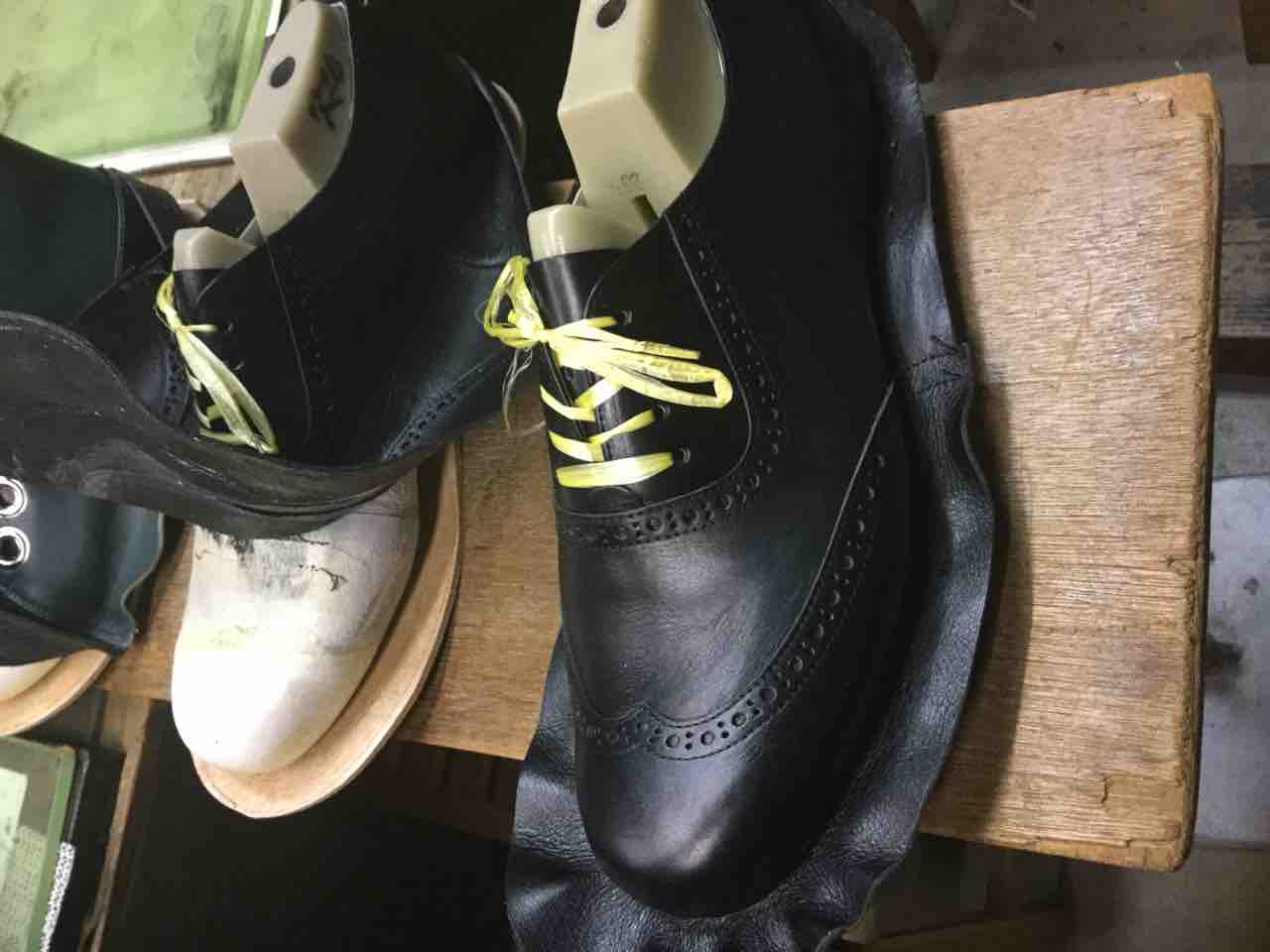 以前は自転車のゴムチューブを巻いて一晩置くというようなやり方をしていましたが、今は靴専用の圧着機を使っています。
