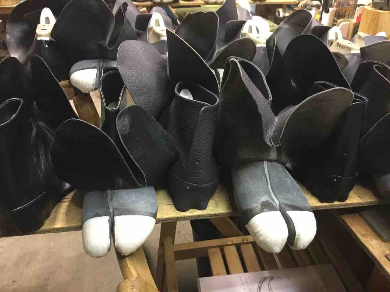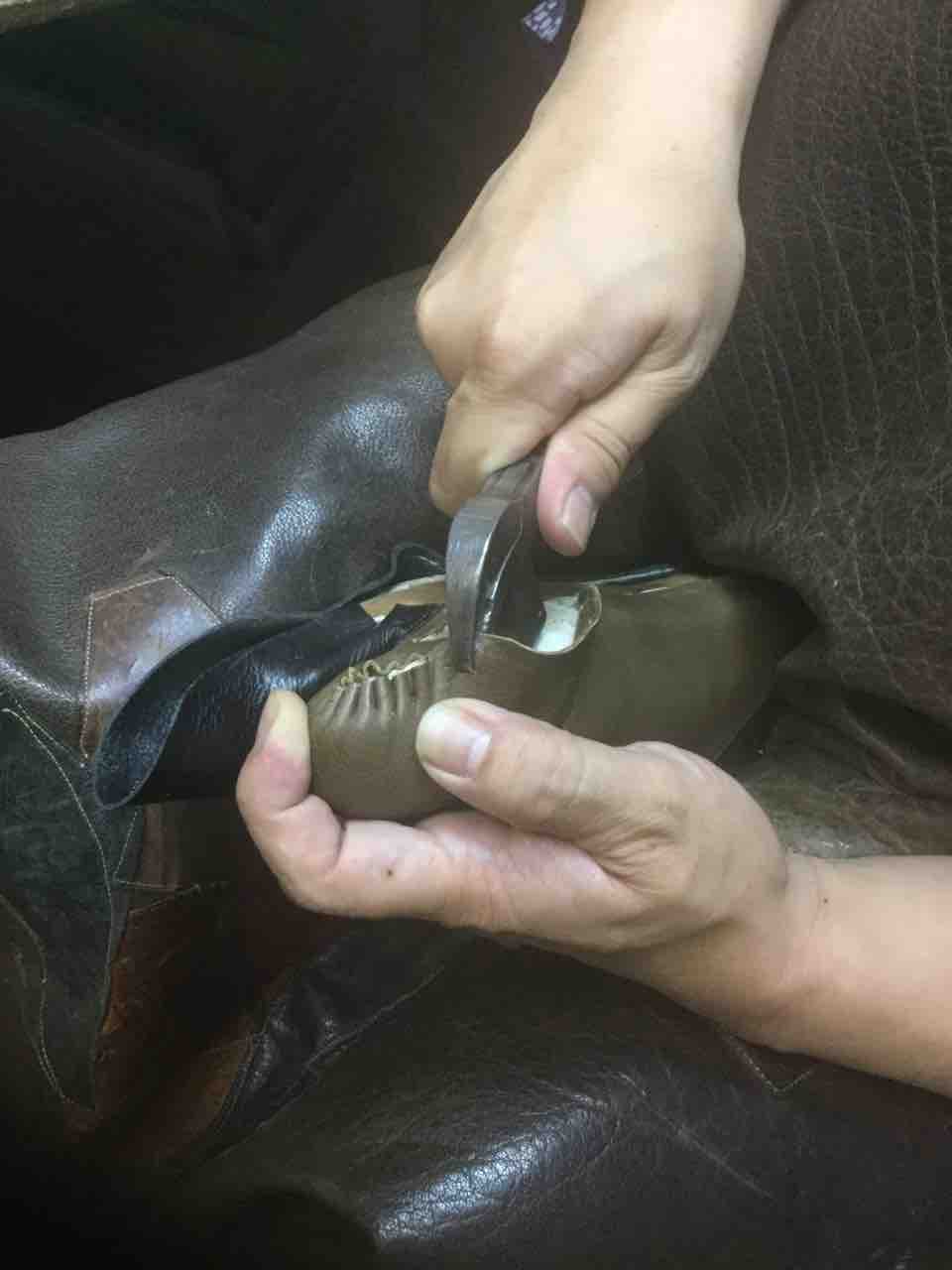 積み上げヒールは文字通り革の一枚ずつ積んで作るヒールのことで、手製靴では一般的な製作手法です。