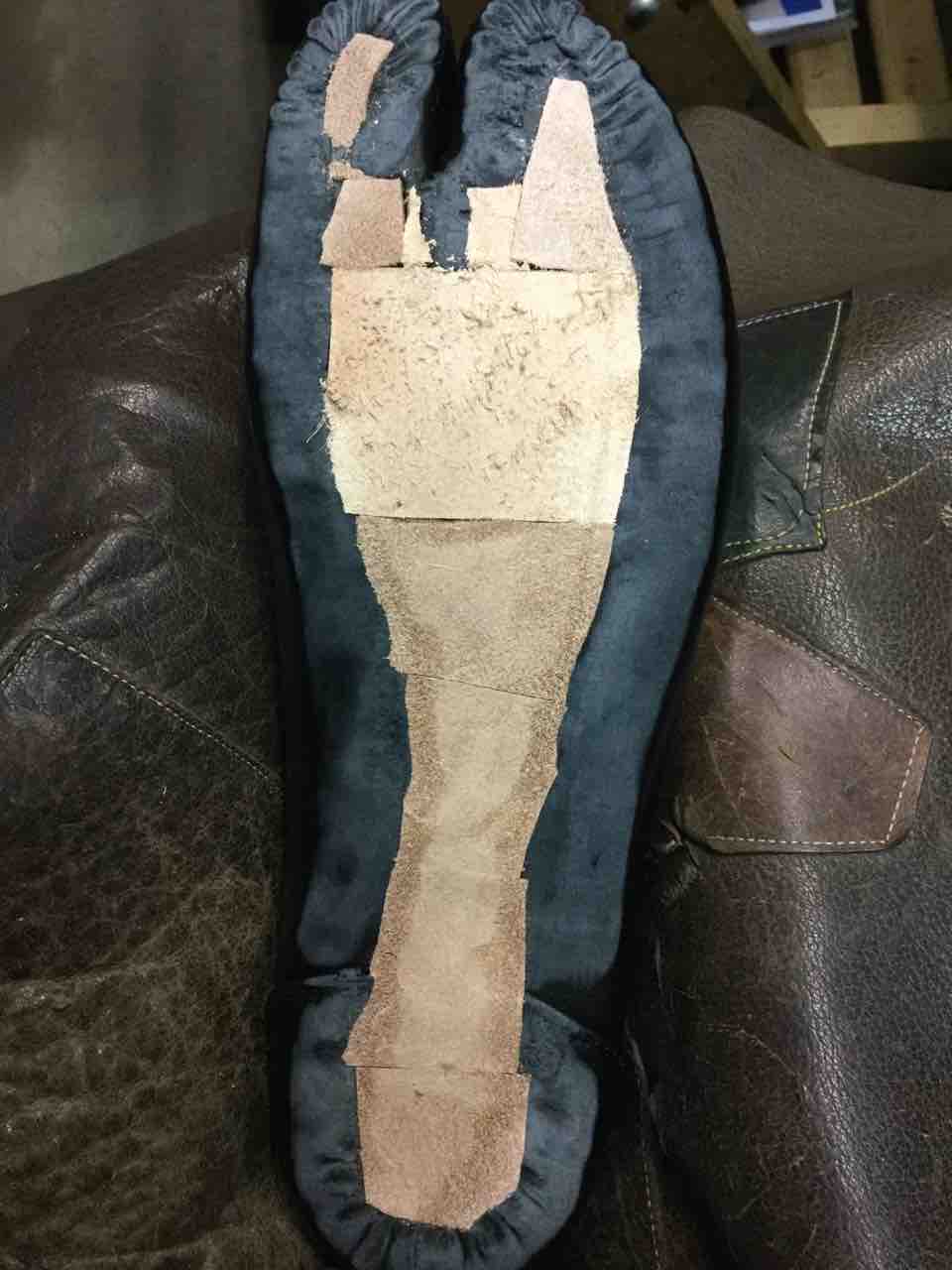 昨日釣り込みと釣り込みシロのバフと中物を詰めたので、今日は積み上げヒールを貼っていきました。