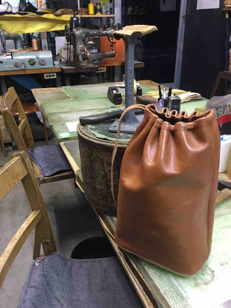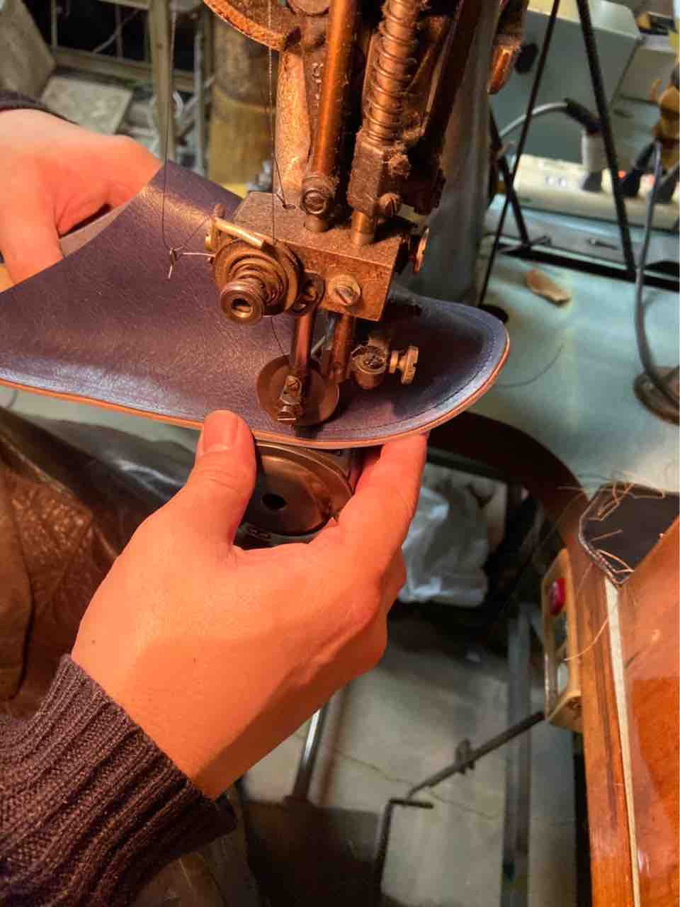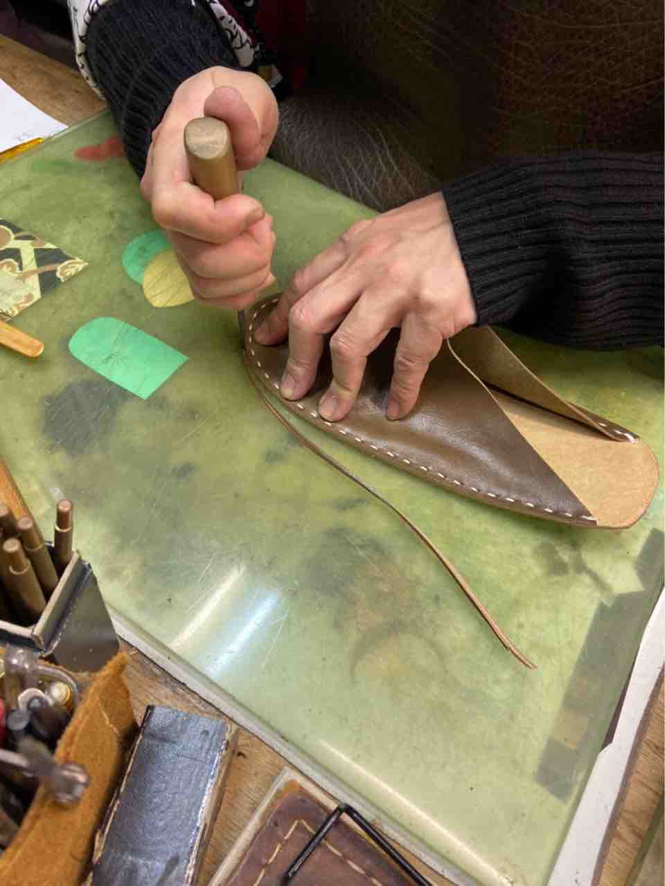 型紙、革の裁断、ミシン、釣り込みなど全ての工程を、