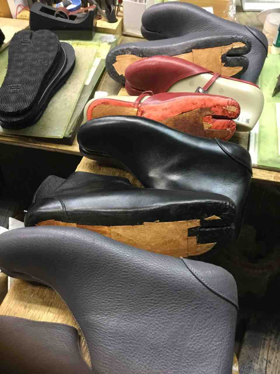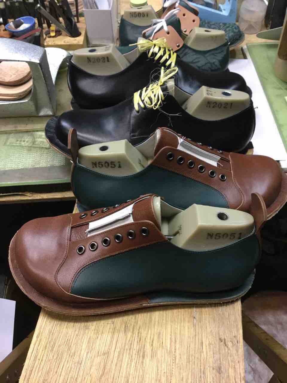 ミッドソールの底付けやステッチダウンの積み上げヒール製作などを進めました。