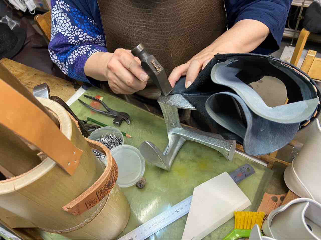 型紙、革の裁断、ミシン、釣り込みなど全ての工程を、
