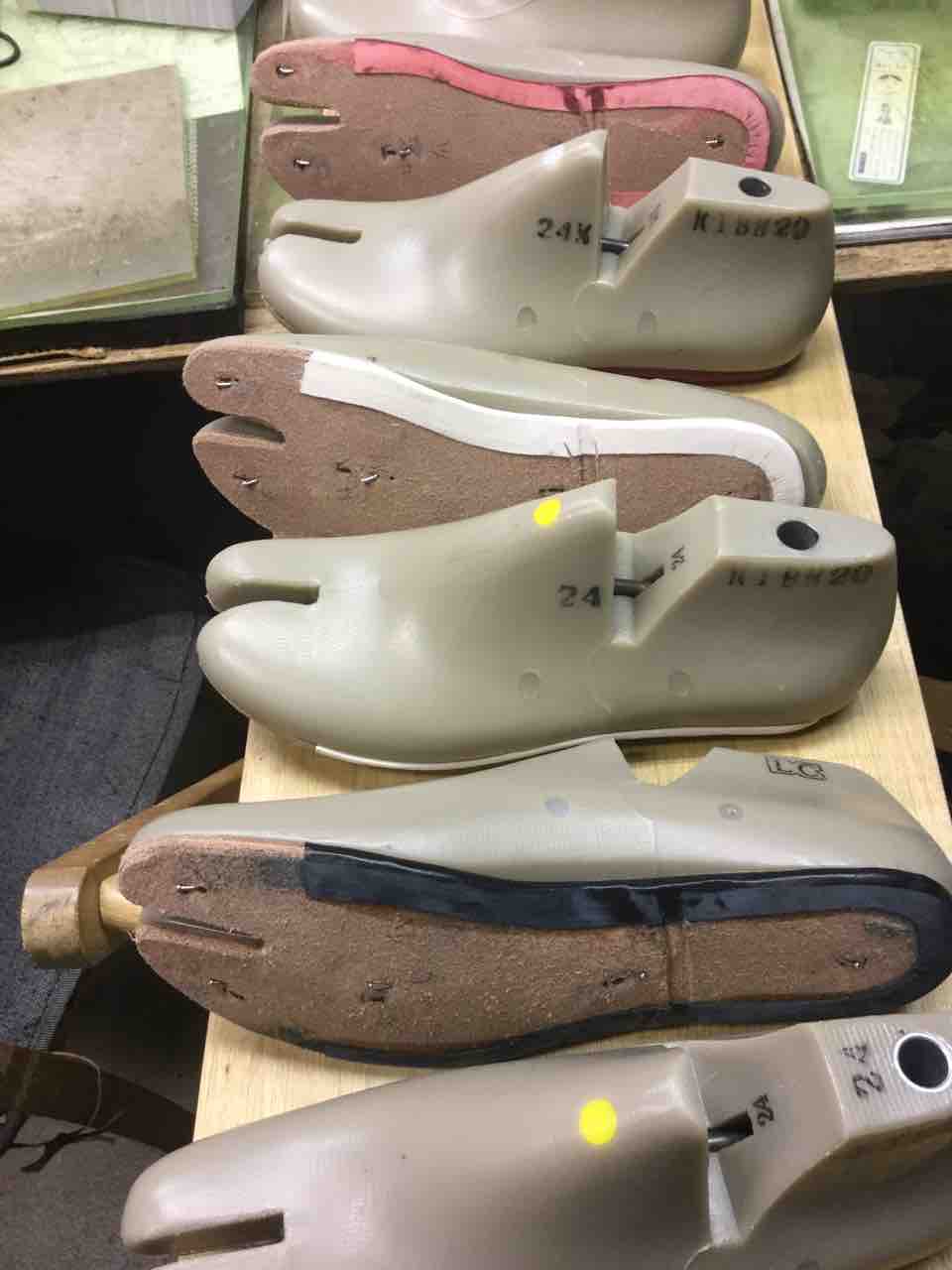 今月は吉靴房の靴型をそのまま使っても足に合わないお客様がいるので、ちょっとしたテクニックを使ってお客様に合うように下拵えをします。