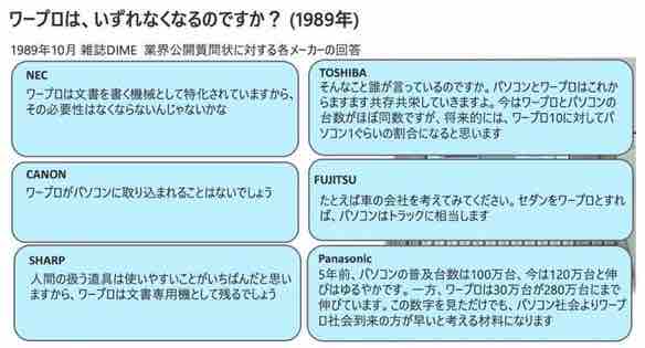 1989年に雑誌DIMEで業界公開質問状に対する各メーカーの回答を並べたものです。