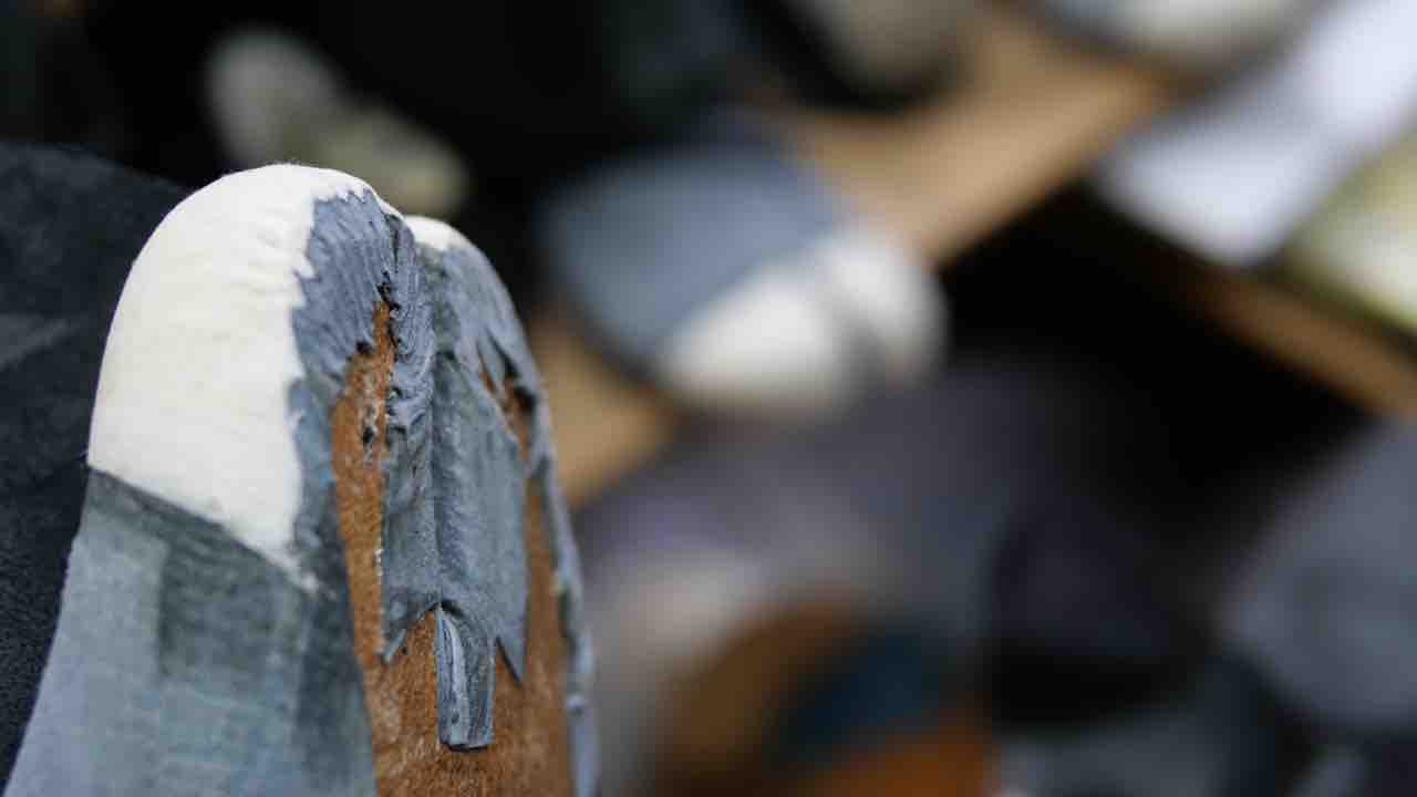 ちなみに甲革を釣り込む前に底面をなだらかにします。