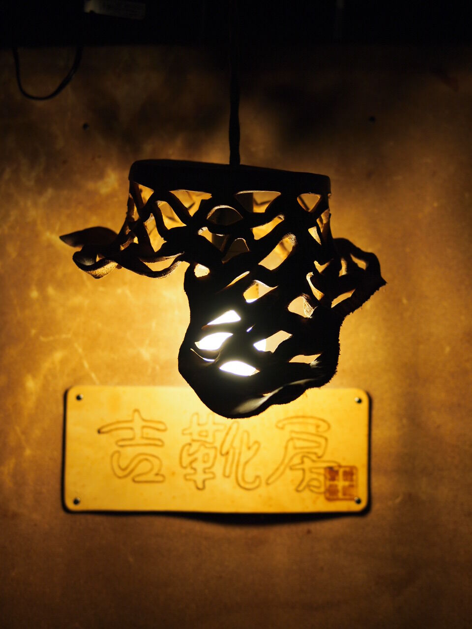 ヌメ革のランプシェードは立ち上げ当初からのお気に入りでいろいろな形を作っています。