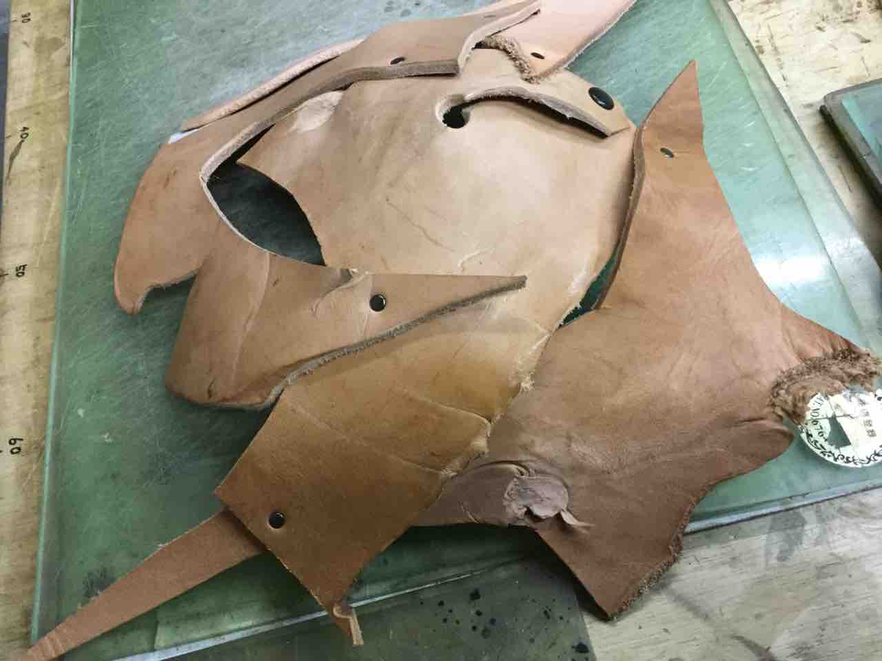 カシメを使い端材を繋ぎ合わせ、ランプに装着する為にバネホックボタンを使っています。