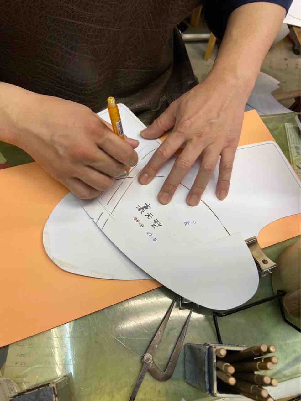 型紙、革の裁断、ミシン、釣り込みなど全ての工程を、