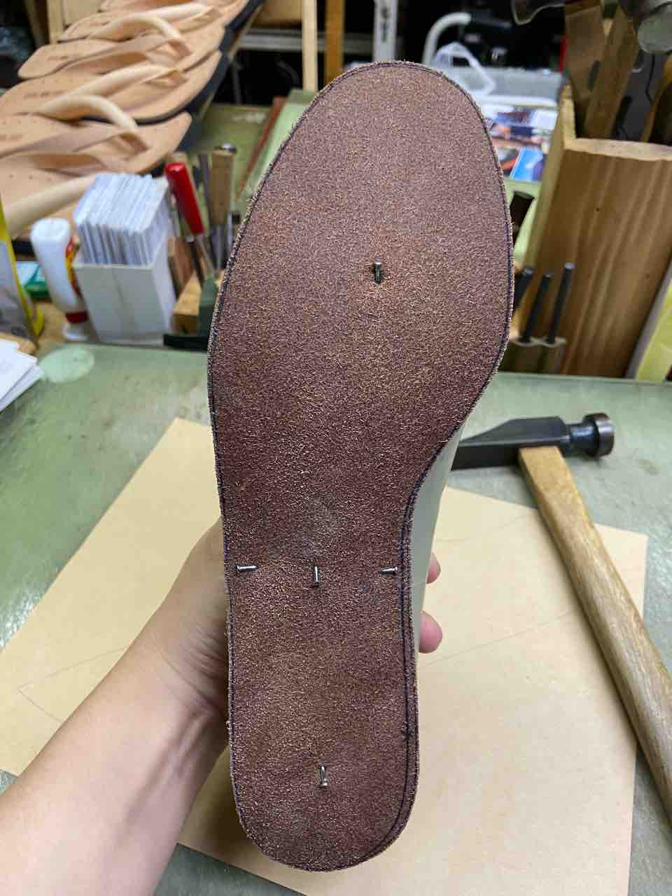 昨日は中底の癖付けからスタートしました