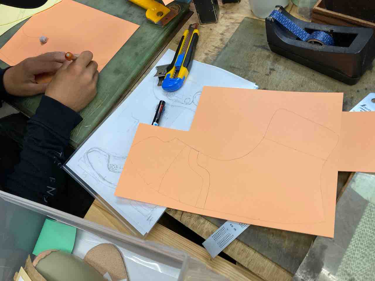 型紙、革の裁断、ミシン、釣り込みなど全ての工程を、