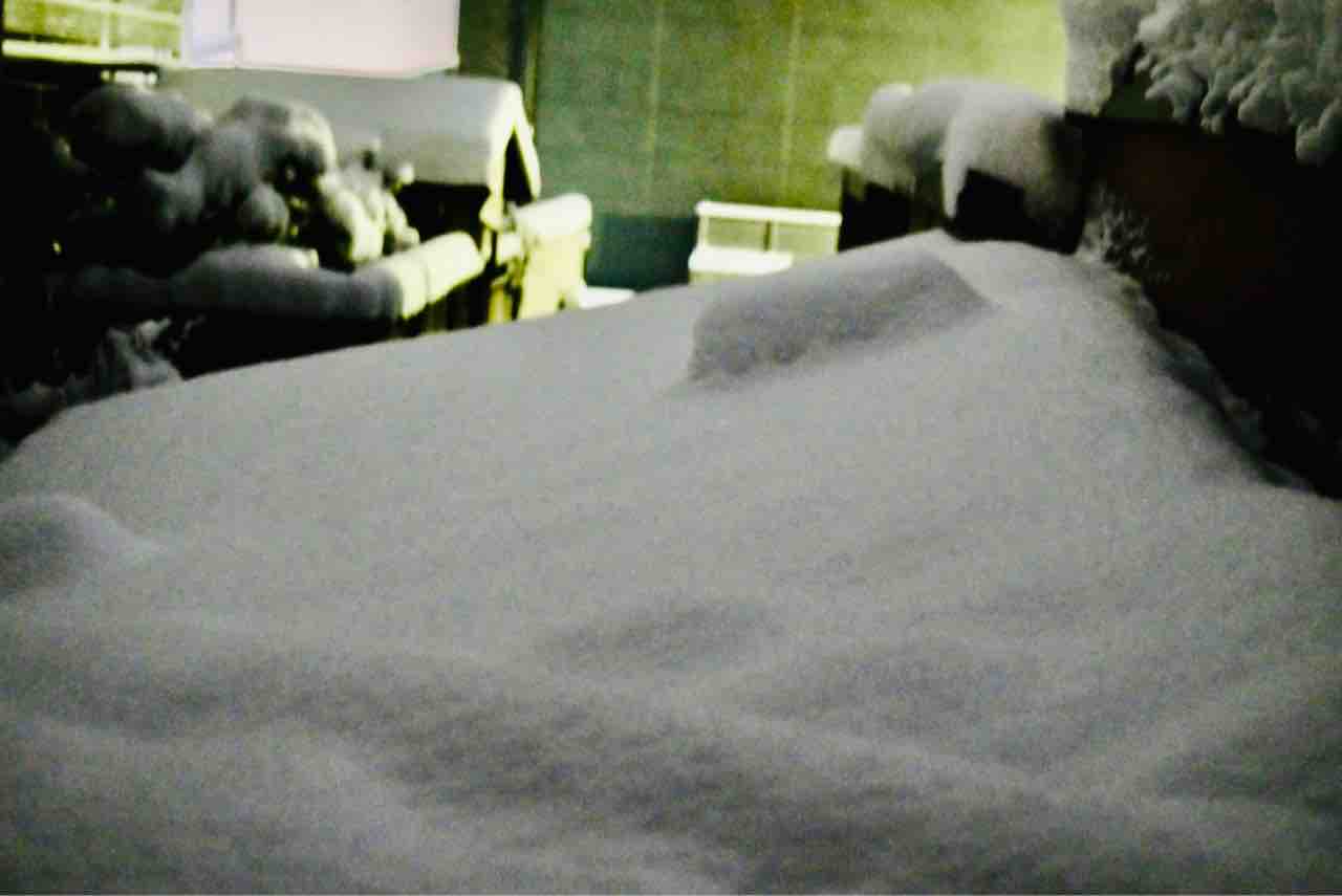 工房の2階から見た1階の屋根はこんな感じに積もりました。