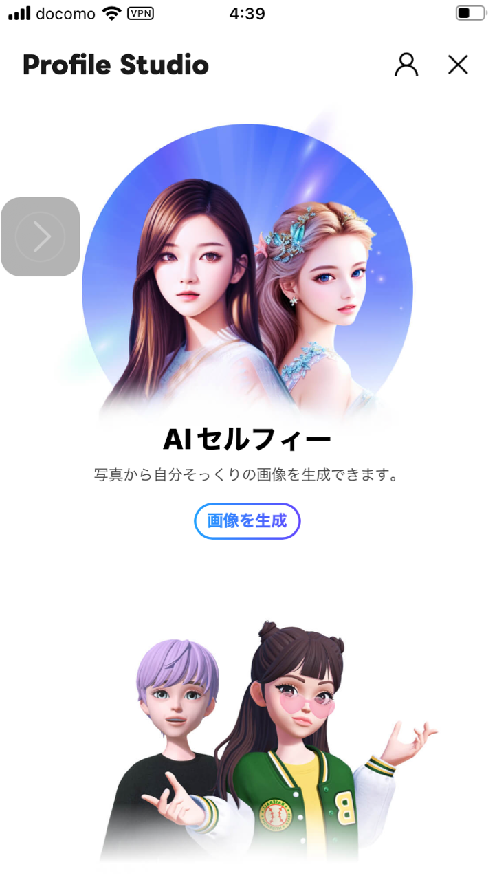 左下にプロフィールスタジオがあり、それをタップすると作成画面に進みます。