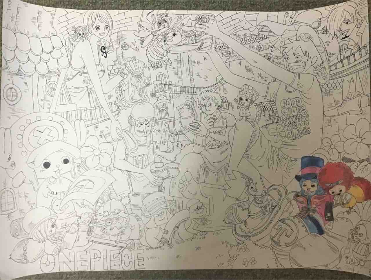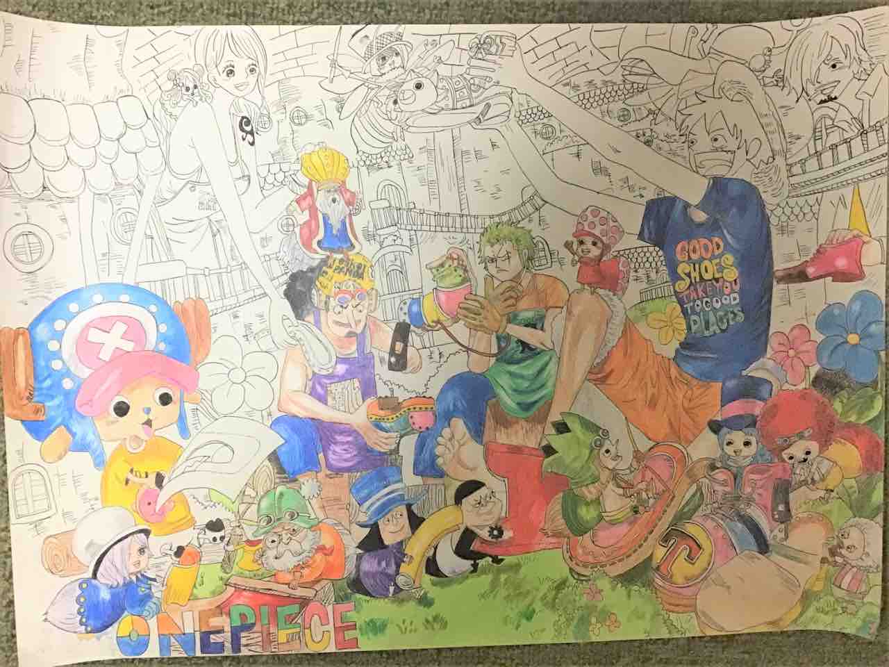 細部にまで色鉛筆で仕上げています。