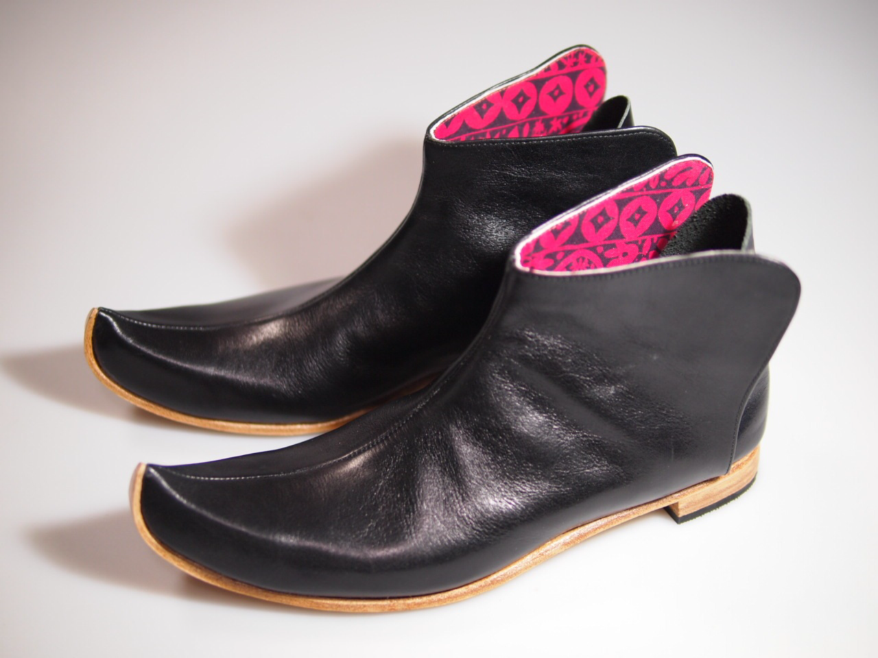 吉靴房のじょんじょんをベースに作られたのですが、特筆すべき点は親指側の鼻緒が無いという思い切ったデザインにしたことです。