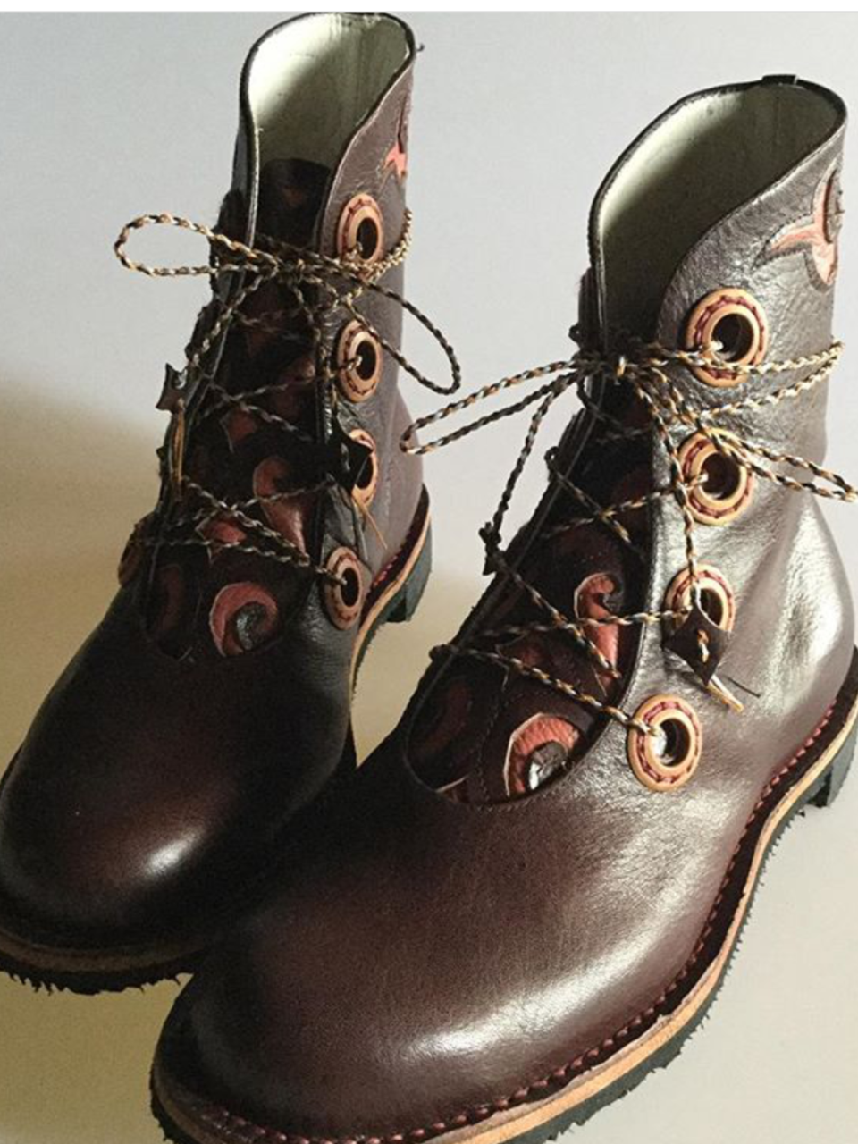 ボタンホックで脱ぎ履きしやすいブーツ。デザイン的な工夫が素晴らしい作品です。