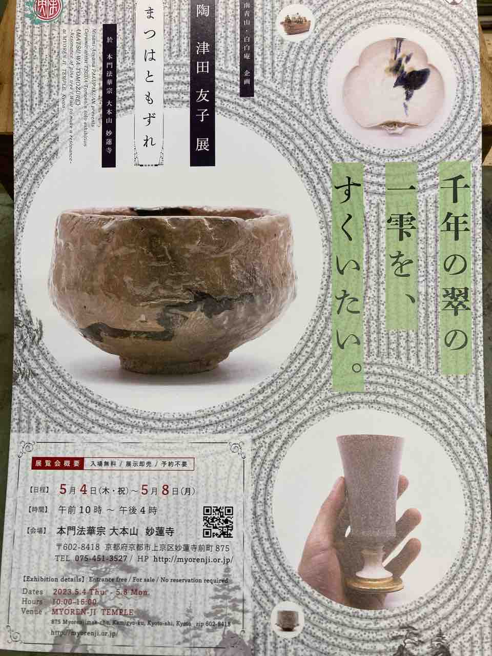 ゴールデンウィークの5月4日(木)〜5月8日(月)に近所の妙蓮寺で先日代官山で出会った陶芸家の津田友子さんの展示会があります。