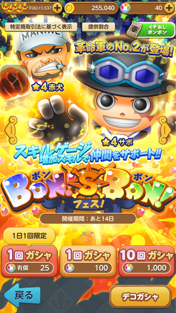 このところ忙しいのでほとんどゲームなどできてなかったのですが、寝る前にちょこっと久しぶりにボンボンを開いてみたら魅力的なガチャが!