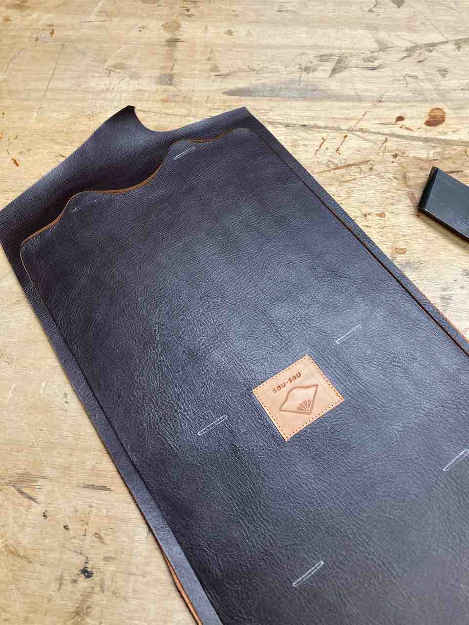 そのそれぞれにコツがあるのですが、甲革に使う革を2枚貼り合わせたタイプは独特の難しさがあります。