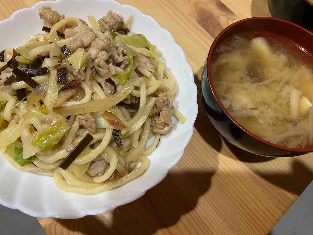 キャベツと玉ねぎと豚肉で焼きうどん!