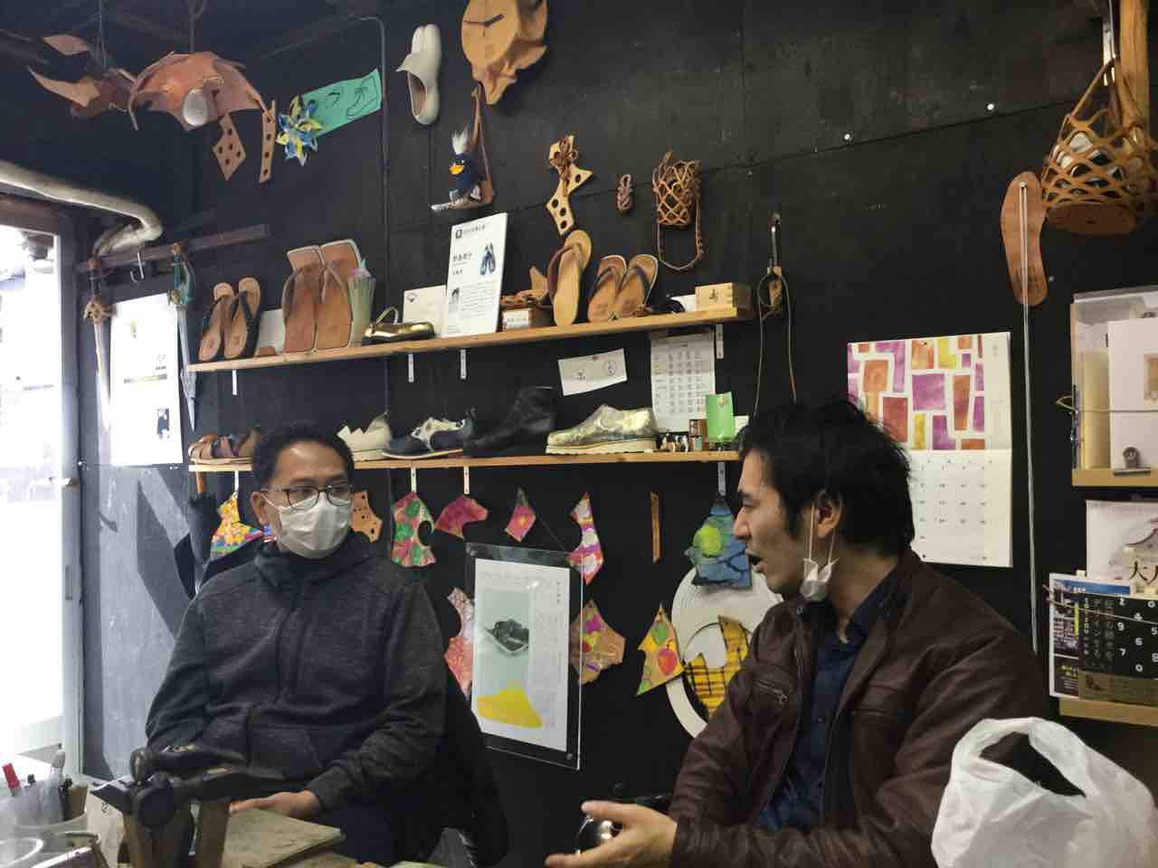 作りながら靴や革の専門的な話から、ニュースや歴史、音楽、