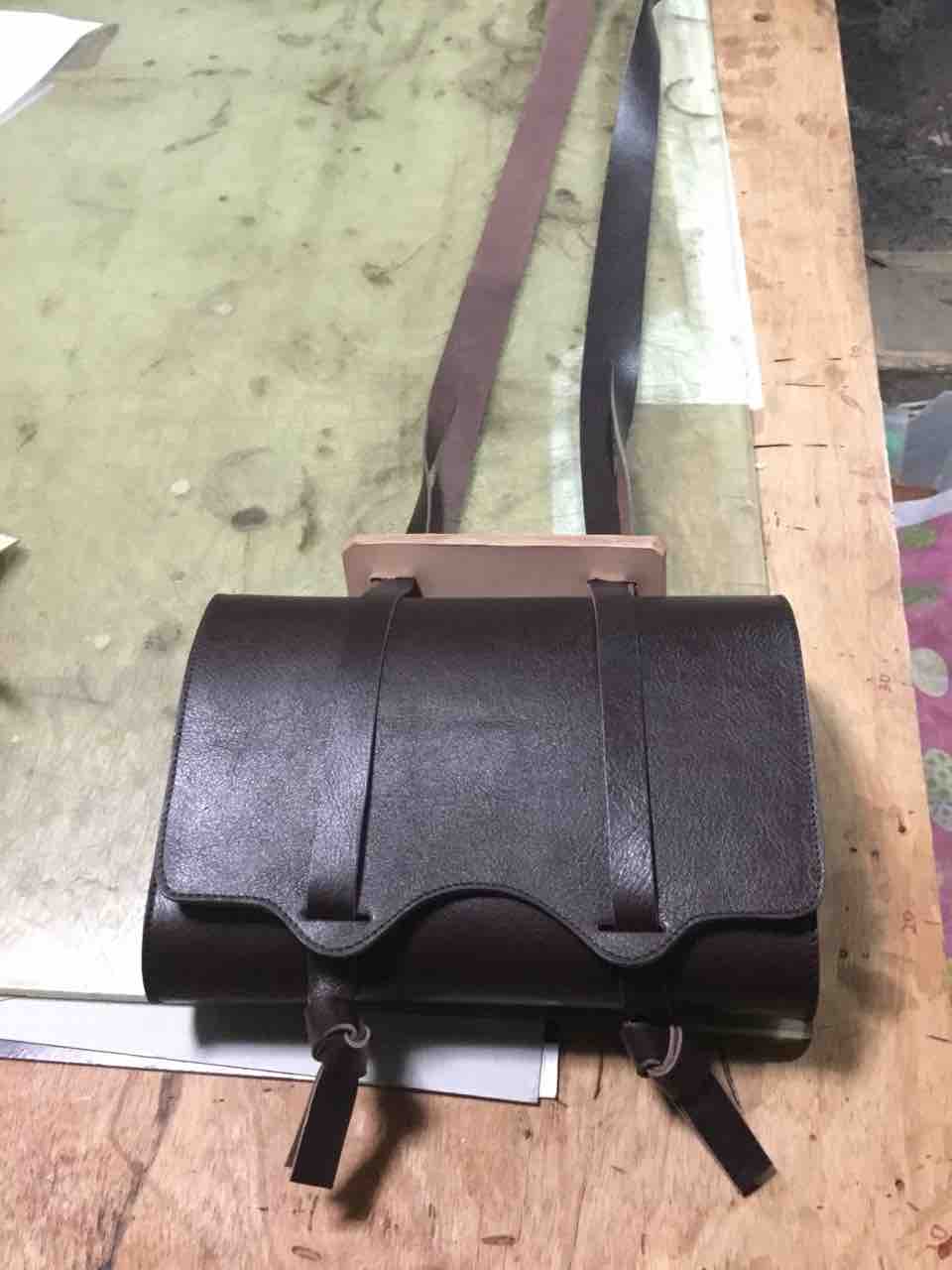 昨日は完成した靴の箱入れとアイヌの小物入れを参考にデザインした鞄であるカロマの製作を進めました。