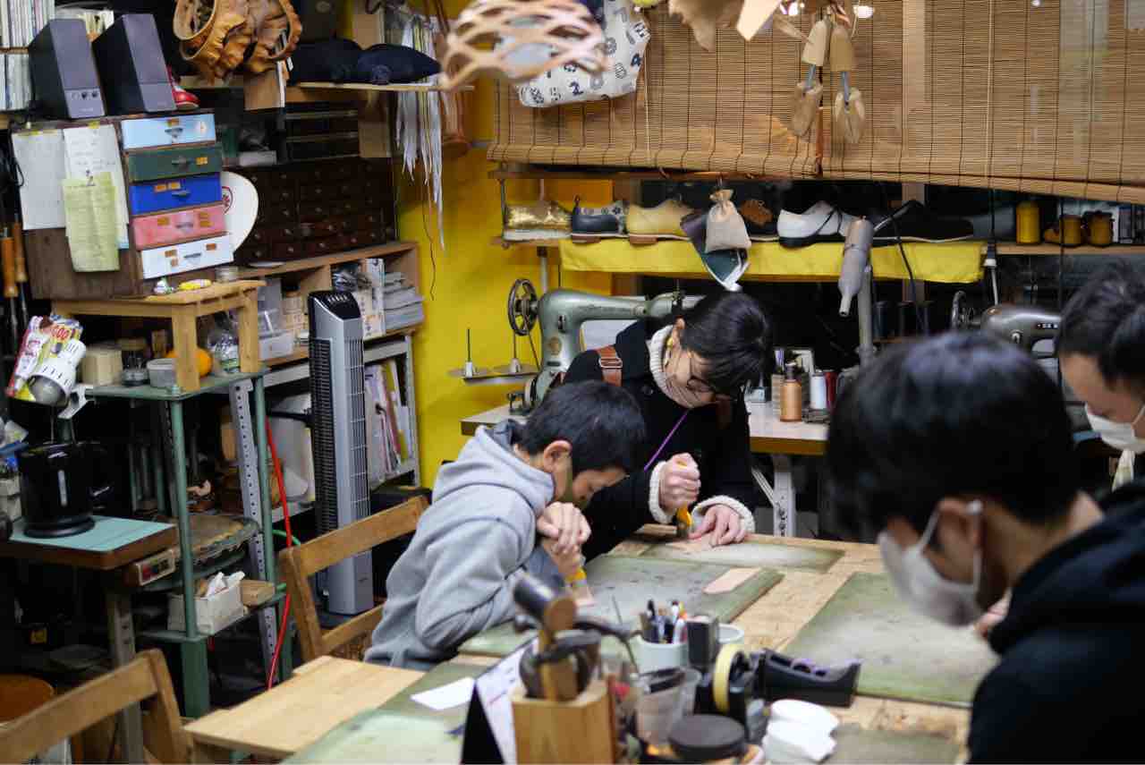 いろんなジャンルのいろいろな会話を楽しみながら靴を作れる教室です。