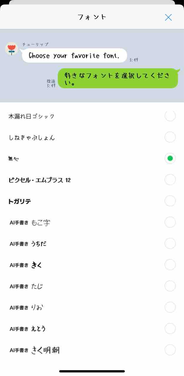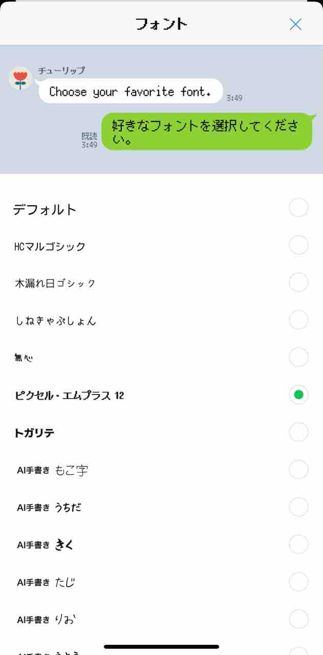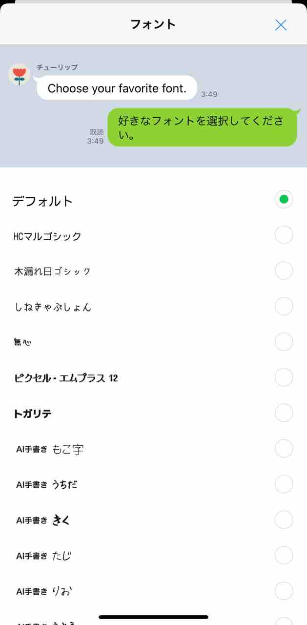 LINEアプリに表示されるフォントを