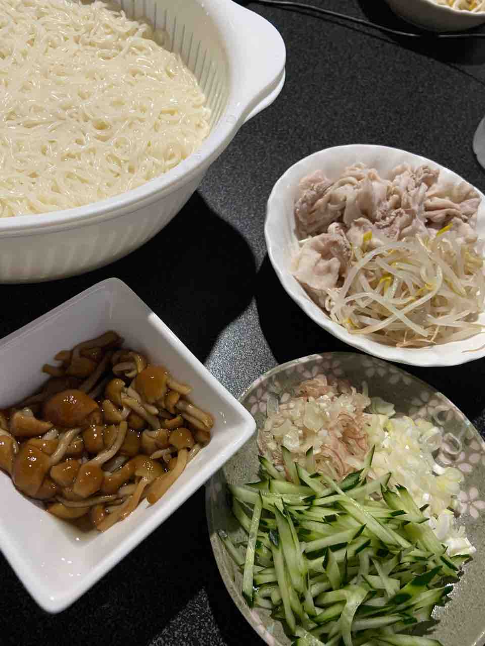 茹でたスパゲティーを合わせ醤油で味付け
