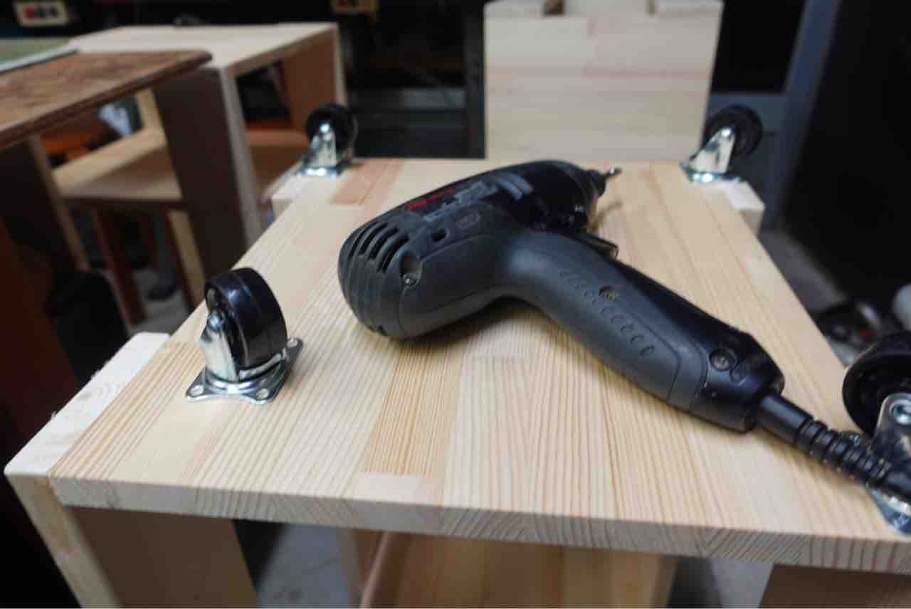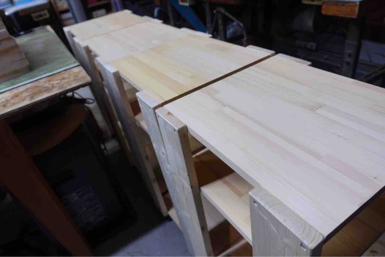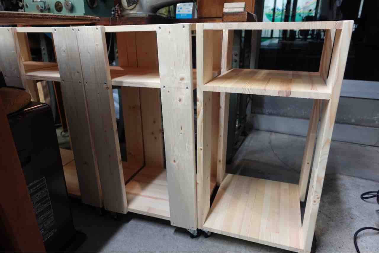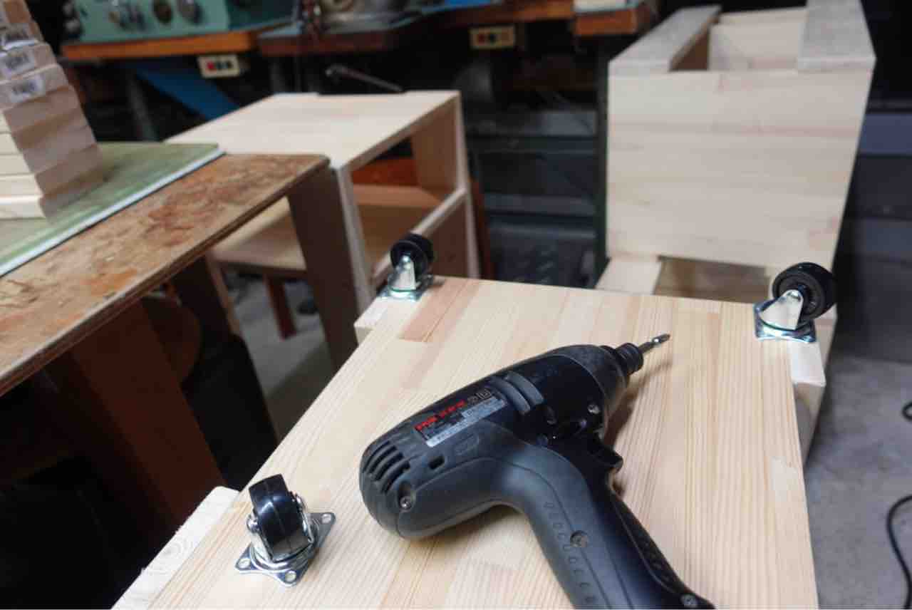 自分達の作業と、教室の生徒さん達により快適に作業していただくためにキャスター付きの棚の製作です。
