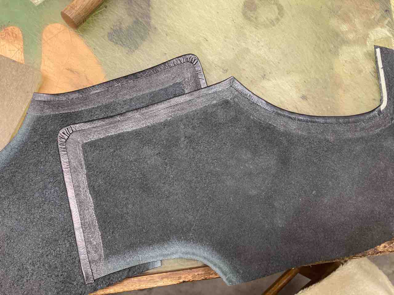 昨日は裏革のミシンをダダダダッとかけてアッパーもまとまってきたので、その後に中底巻きをしました。