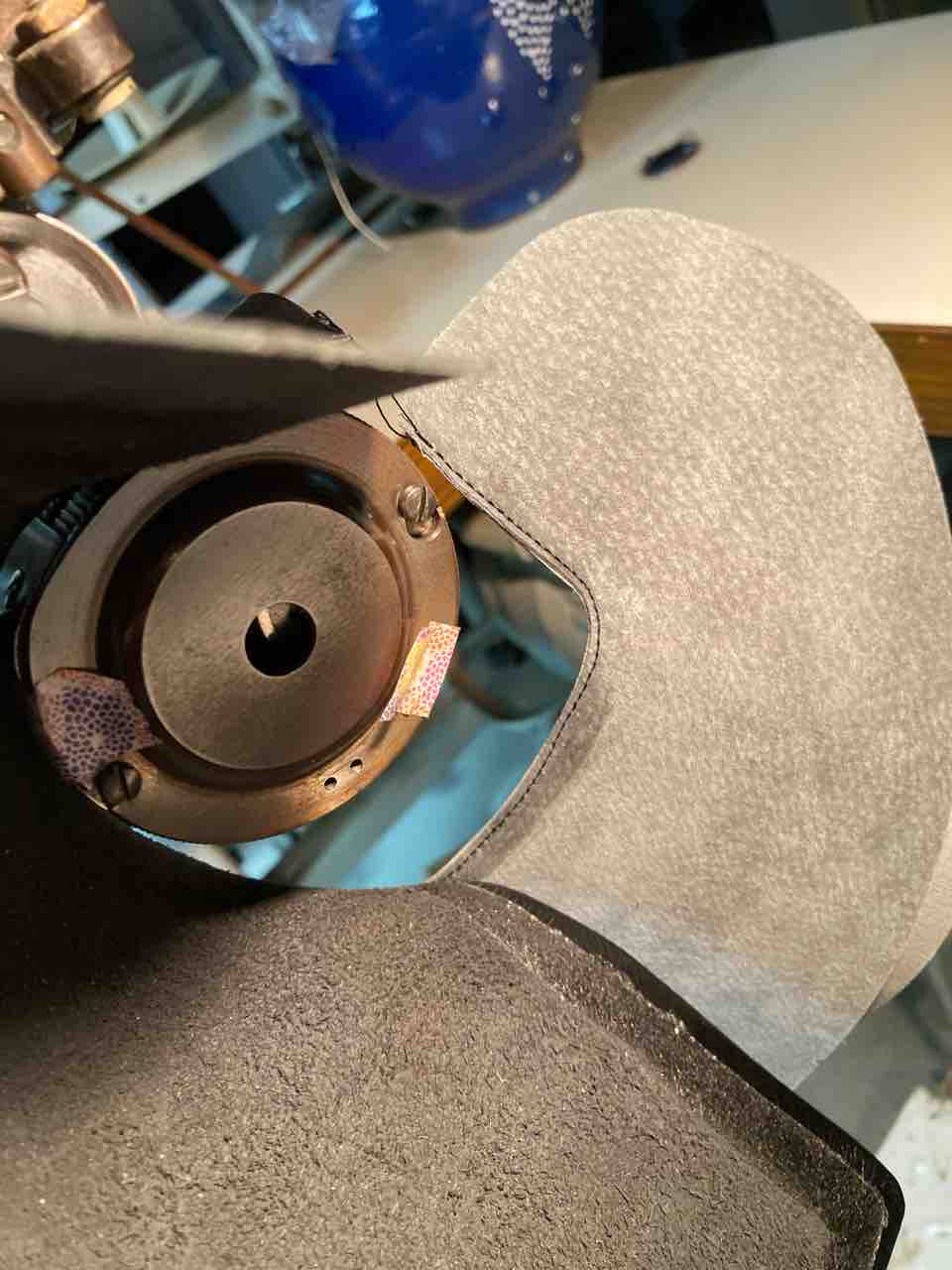 さてもう少しでアッパーは仕上げミシンの工程になります。