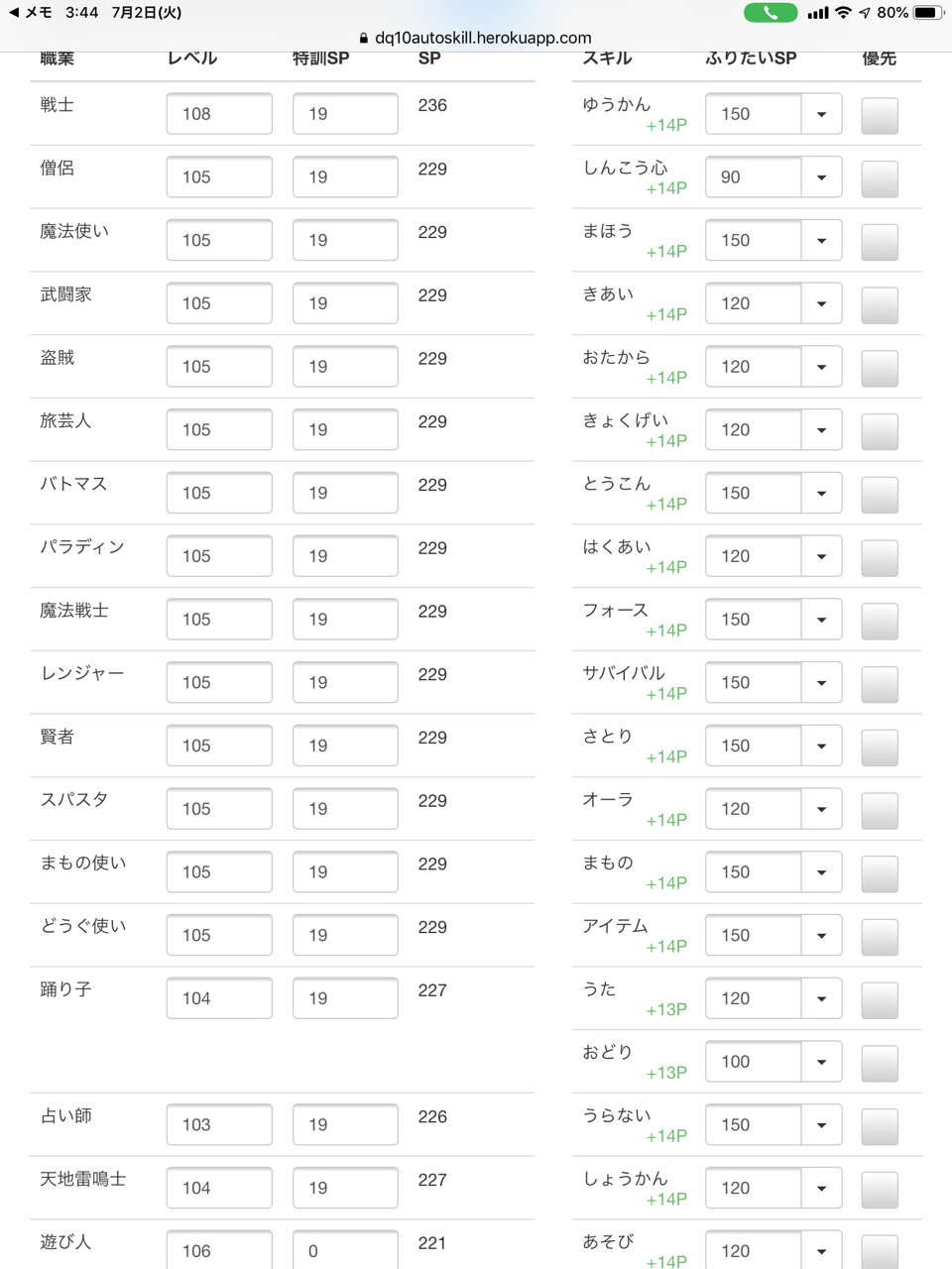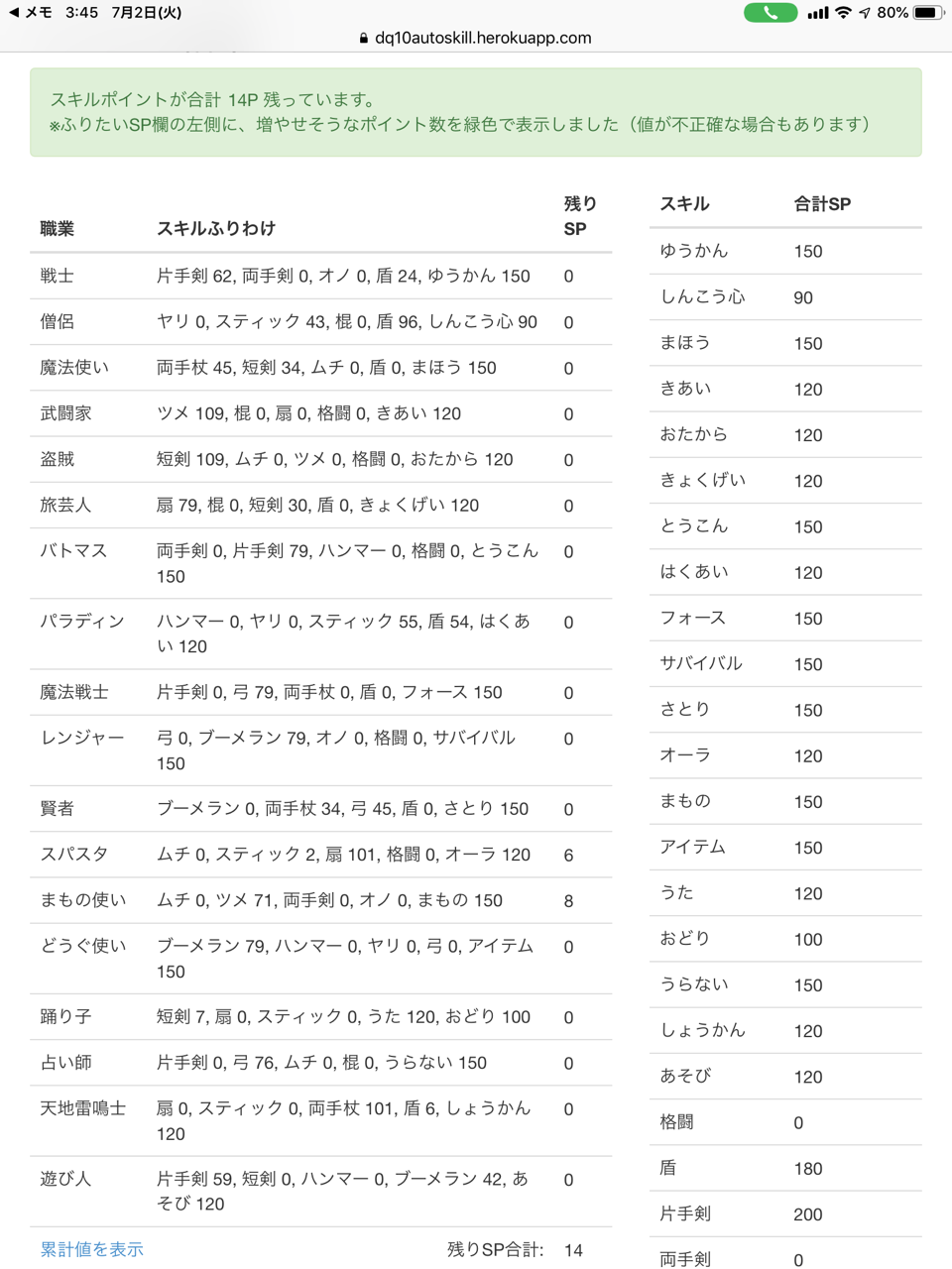 ドラクエ10では職業が18種もあり、武器種が16種もあり、スキルポイントの合計が4,200P以上もあるので、振り分けるだけでかなり労力がいります。