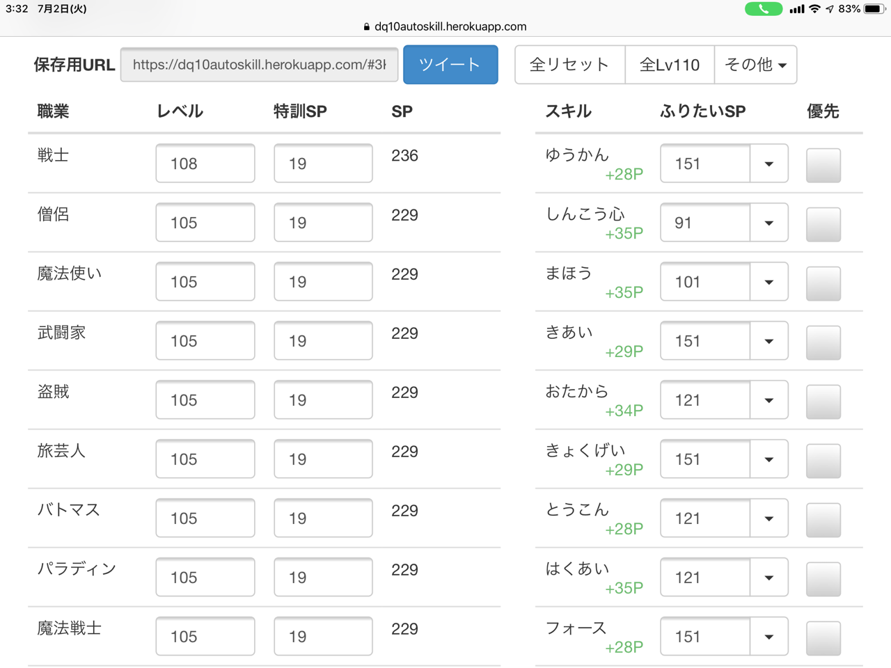 オンラインの世界では、いろいろ偉い人がいて、そのスキルポイントを自動で振り分けてくれるサイトを無料で開放してくれたりしているので、存分に活用させていただいています。